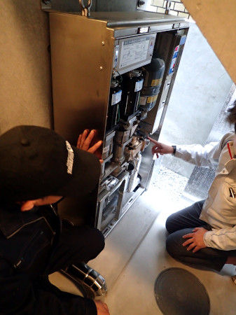 | 4月21日(月)番外編 | 全ての足場が外されていきます。 ![]() 階段の手すりです。 これから塗装しますが、色には結構みんなで悩みました。 ![]() 外廊下と天井は塗装が済んでいます。 ![]() 電気の引き込みは建物に直結となりました。 電柱を立てるとかいくつか案はありましたが。 今週末にはここから受電が始まります。(今までは仮電柱でした。) ![]() |