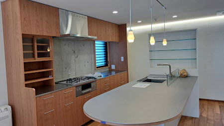 4月11日(月) 上棟式でのお供え物(棟札というんでしょうか)は最上階(5階)の建物の中心の天井裏に設置されます。 M385ビル建物の中心はなんとハリーのデスクの真上にあたるんです。 毎朝、日々の安寧を願って拝まないと。 ![]() こんな感じ。 ![]() 給換気扇からの排気パイプがかなり立派です。 ![]() 4月15日(火) 内壁が設置されていきます。部屋の形が見えてきます。 ![]() 4階のリビングからキッチン方向。図面で想像していたより広く感じます。 天井高が下がっているところには間接照明が入ります。 ![]() 岡崎さんがフローリング材の点検・確認に来ていました。 天然のチーク材なので色合いや模様が様々です。 それをどう組み合わせて貼るか、アーティストの目で調整してくれています。 パズルを解いているような感じです。 ![]() 松本さんは大工さんと細部の造作について一つずつ確認しています。 図面では読み切れないところはこのように現地調整になるんですね。 ![]() ここの雨どいは風鈴みたいなデザインです。 筒の中を雨水が落ちていきますが、雨量が多い時は外側を伝って落ちます。 ![]() 4階からは路地の様子が観察できます。 キッチンカーが来たことがすぐ分かりますね。(笑) ![]() 足場が外れてレンガの壁がなかなか良い感じに仕上がったのが分かります。 ちょっと逆光気味でうまく表現できていませんが。 ![]() 3階に縦のスリット状の窓みたいなのが見えますが、これは鏡面仕上げのステンレス板で実は窓ではないんです。 構造設計上ここを窓に出来なかったのですがこんな風に仕上げてくれました。 ![]() この路地に建っている建物の中では秀逸です。(親バカか?!) 下からは3階建てのビルのように見えます。 ![]() |